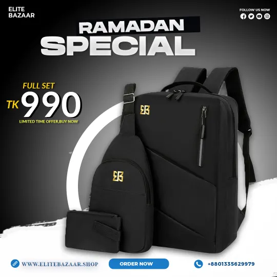 ট্রাভেল হবে আরও সহজ ৩ পিস কম্বো ব্যাকপ্যাক